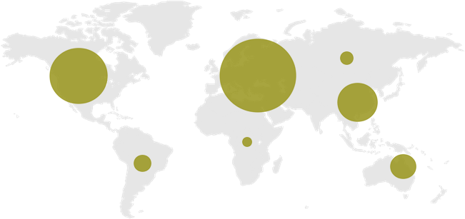 Рис. 1. География проектов (доля проектов в мире от общего количества)