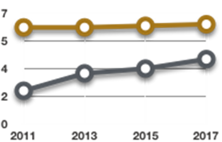 Откуда такой интерес отрасли к решениям на блокчейне? Причины объясняются желанием участников проектов связать современные вызовы по реформированию рынка с особенностью процесса производства-распределения-потребления электроэнергии. Поэтому подобная технология пришлась здесь как нельзя более кстати. Этому также способствует сближение числа абонентов, подключенных к интернету, и количества потребителей, подключенных к электросети, в мире (рис. 2) [8, 9].