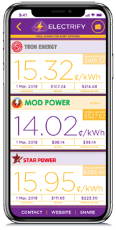 Компания Electrify начала работу в Сингапуре в марте 2017 года. В начале 2018 года в рамках первичного выпуска токенов компания привлекла инвестиций на $30 млн. Всего за один год компания смогла сэкономить участникам своего проекта на счетах за электроэнергию порядка $554 000, а общая сумма транзакций с мая 2017 года составила около $3,79 млн. Предложение компании можно считать успешным в связи с тем, что с апреля 2018 года начиналась двухэтапная государственная программа полной либерализации рынка электроэнергии Сингапура. В апреле также было заключено партнерское соглашение с одной из лидирующих сетевых компаний Японии — TEPCO. В планах Electrify выйти на рынки Филиппин и Австралии в 2019 году [2].