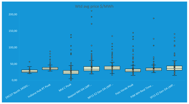 Рис. 7. Средняя стоимость 1 МВт·ч электроэнергии на оптовом рынке США в 2017 году
