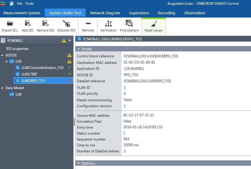 Expand the device details in order to pinpoint the message defined in the SCD file but absent on the network, as indicated by the red cross in Fig. 7.