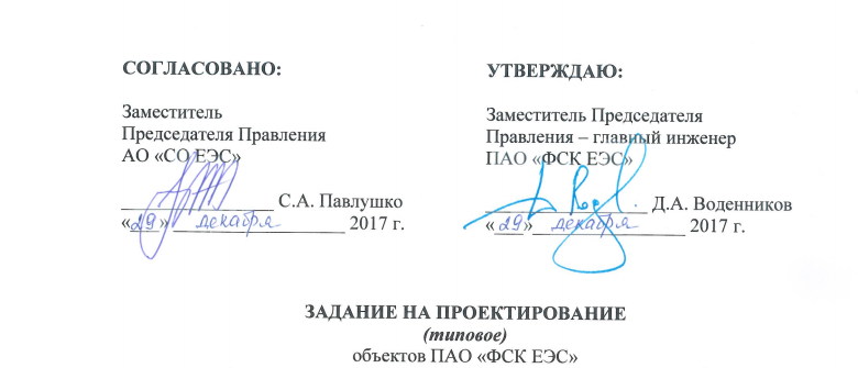 Типовое задание на проектирование объектов ФСК было утверждено распоряжением «Об утверждении задания на проектирование (типового) объектов ПАО “ФСК ЕЭС”» от 26.05.2015 № 274р для унификации заданий на проектирование, разрабатываемых по инвестиционным проектам инвестиционной программы компании, учета требований нормативных документов, стандартов и организационно-распорядительных документов ФСК, СО и «Россетей». [