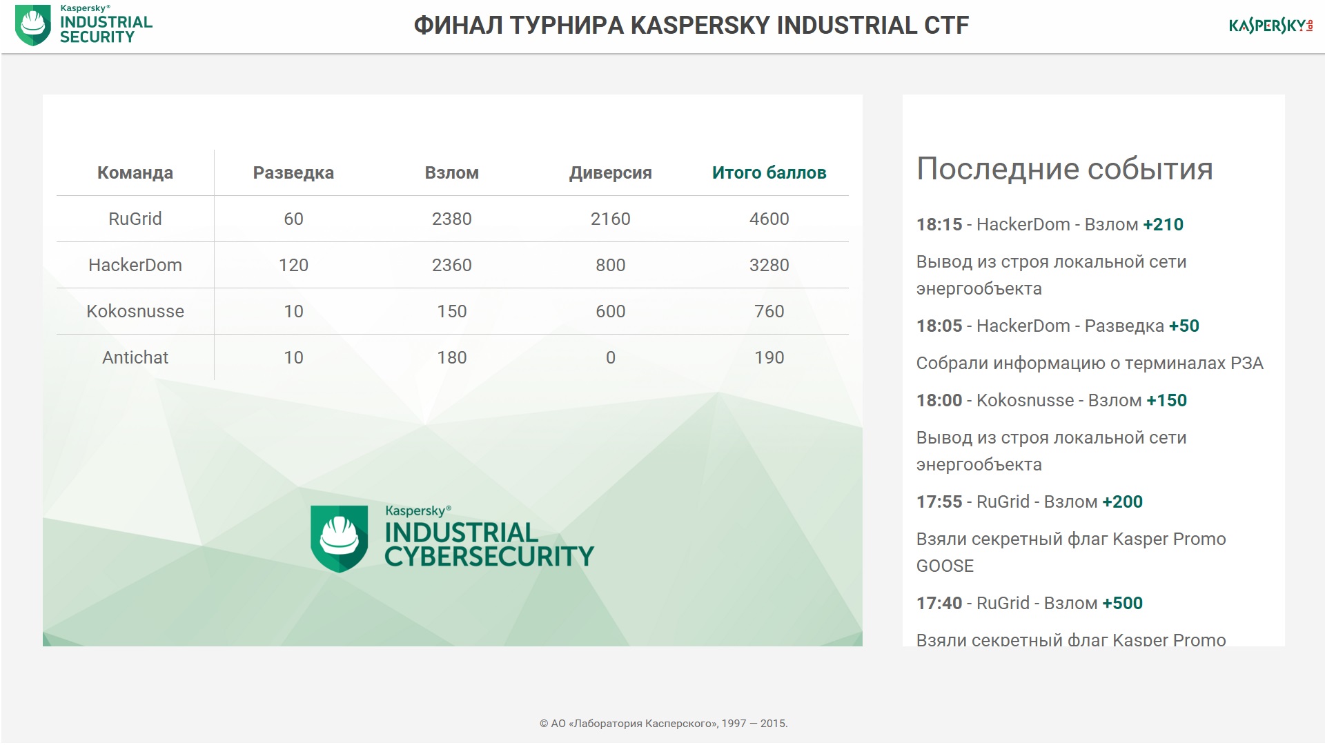 Итоги первого дня турнира Kaspersky CTF