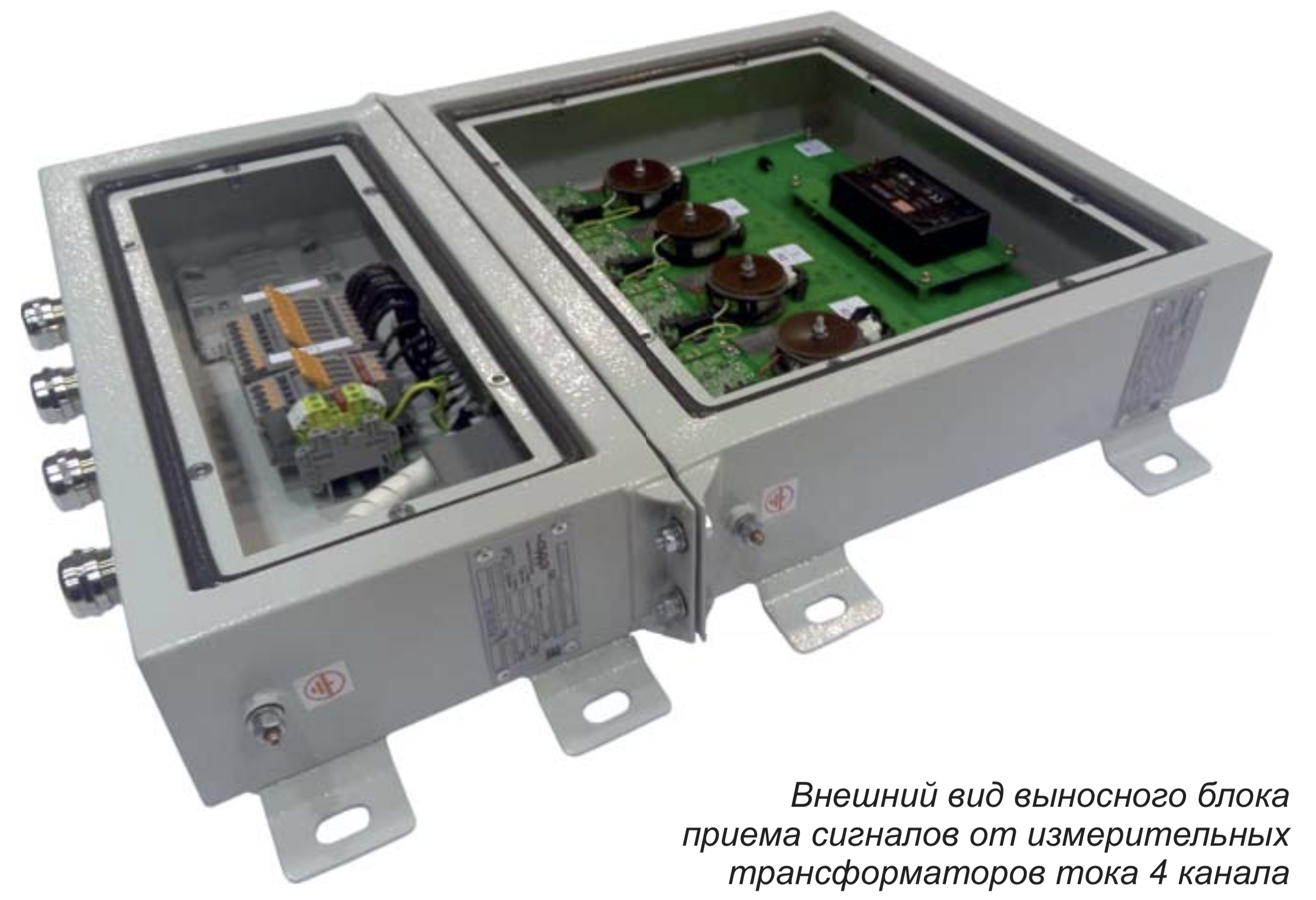 • выносной блок приема/передачи дискретных сигналов (БВ.УС-01) Выносные блоки для приема сигналов от измерительных трансформаторов напряжений и приема/передачи дискретных сигналов имеют аналогичный вид. Конструкция блоков унифицирована.