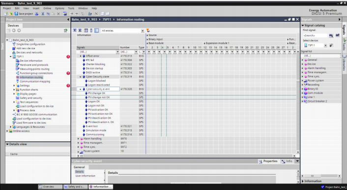 Также в устройствах серии SIPROTEC 5 теперь реализован специальный журнал событий, регистрирующий не успешные попытки авторизации с использованием неправильного пароля, факты успешной/неуспешной смены пароля и др. После 3 последовательных не успешных попыток ввода пароля доступ к устройству блокируется на 5 минут. Пользователь не может очистить содержимое данного журнала событий. Также стоит отметить, что все перечисленные выше события могут быть переданы в систему АСУ ТП подстанции, как и любой другой формируемый устройством сигнал.
