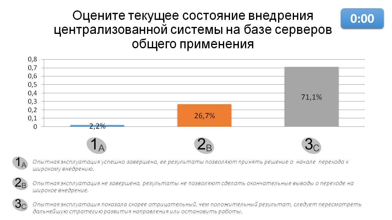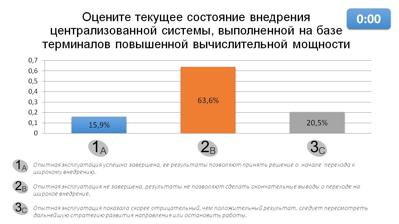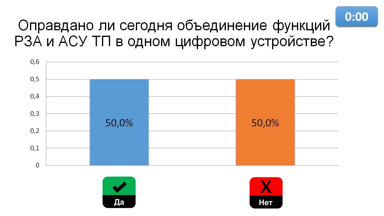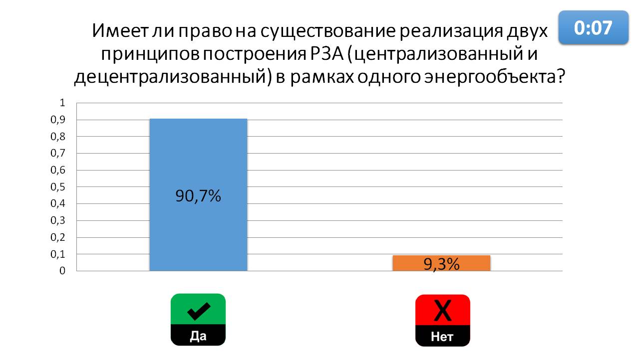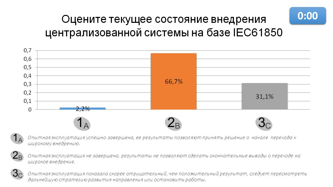 Редакция журнала «Цифровая подстанция» совместно с Михаилом Георгиевичем Линтом выделили 7 вопросов, которые были предложены участникам к обсуждению и ответам. После постановки вопроса президиум, выбранные эксперты и специалисты из зала давали развернутый ответ на вопрос. Далее, все участники голосовали. Таким образом, мы получили «срез» мнений специалистов, вовлеченных в проблемы круглого стола и стремящихся найти пути их решения. Вопрос №1.  Оцените текущее состояние внедрения централизованной системы на базе IEC 61850. Слайд6 Прокомментировать данный вопрос мы попросили Алексея Аношина - технического директора ООО «ТЕКВЕЛ», Грибкова Максима - директора департамента по релейной защите и режимной автоматике электрических сетей ПАО «МОЭСК» и Сергея Попова - начальника центра реализации технологии «Цифровая Подстанция» ПАО «НТЦ ФСК ЕЭС». Алексей Аношин отметил следующее: «Очень много акцентов в части централизованных систем делается на экономику. Кроме Виктора Пуляева никто не говорил о дополнительном функционале. Рассмотрение вопроса только с экономической точки зрения - ловушка. Экономика централизованных систем строится вокруг MU, и многие думают, что это простой АЦП, а значит, он должен быть дешевым, но это не так. MU (УСШ) - это такой же терминал РЗА, только без функций защиты, и цена у него соответствующая. Опыт АО «Тюменьэнерго» показал, что пока результат эксплуатации неоднозначный. На примере ПАО «РусГидро», представившей сегодня материалы по эксплуатации, можно реально развивать это направление в ВУЗах, предоставляя им данные материалы на обработку».