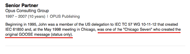 Историю создания одного из протоколов стандарта МЭК 61850 - GOOSE - поведал инженер-релейщик электросетевой компании Commonwealth Edison/Exelon Марк Саймон, уже вышедший на пенсию. Он написал письмо в редакцию журнала PACWorld с комментариями по опубликованной статье о протоколе GOOSE.