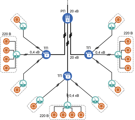 Рис. 2. Энергоснабжение микрорайона на переменном токе
