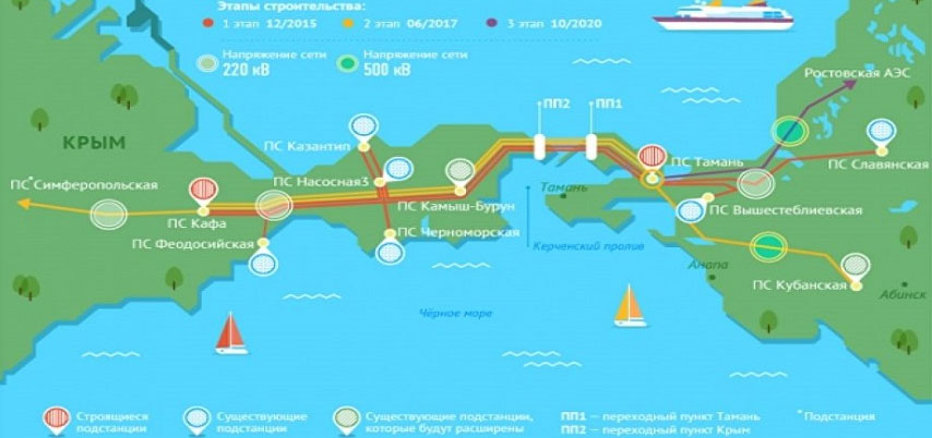В рамках третьего этапа строительства электросетевого энергомоста в Крым завершены строительно-монтажные работы на объекте высоковольтная линия 500 кВ «Ростовская — Андреевская — Вышестеблиевская (Тамань)». Северо-Кавказское управление Ростехнадзора осмотрело электроустановку и выдало разрешение на допуск в эксплуатацию энергоустановки на период проведения пусконаладочных работ. С 30 мая ЛЭП введена работу в режиме пусконаладки. Министр топлива и энергетики Республики Крым Вадим Белик сообщил 6 июня, что «успешно завершено выполнение всех мероприятий комплексной программы опробования рабочим напряжением и включения высоковольтной линии в транзит, в том числе проведена проверка правильного монтажа и настройки устройств релейной защиты, противоаварийной автоматики и связи».