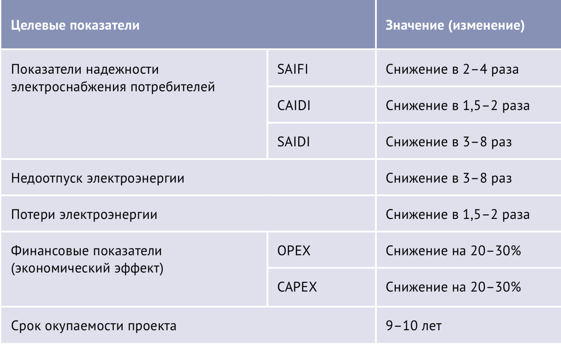 Комплексная модернизация и автоматизация распределительных сетей позволяет добиться следующих результатов — см. таблицу на рис. 5.