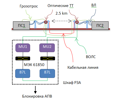 Использования ВОЛС, встроенных в грозозащитный трос, для передачи сигнала блокировки АПВ линии