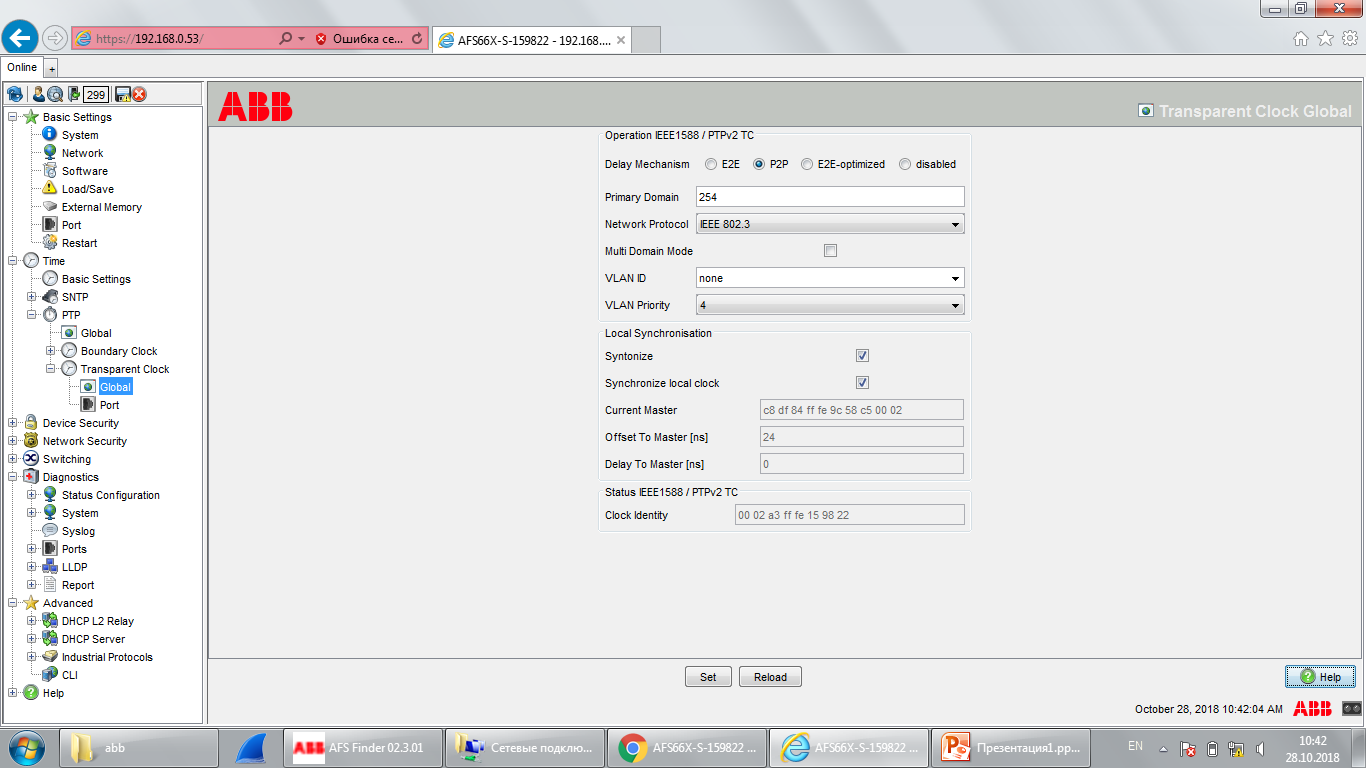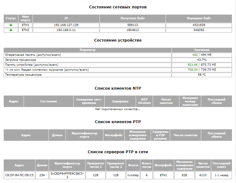 [3] К замечанию по окну веб-интерфейса (рис. 7): информация о состоянии PTP в процессе доработки.