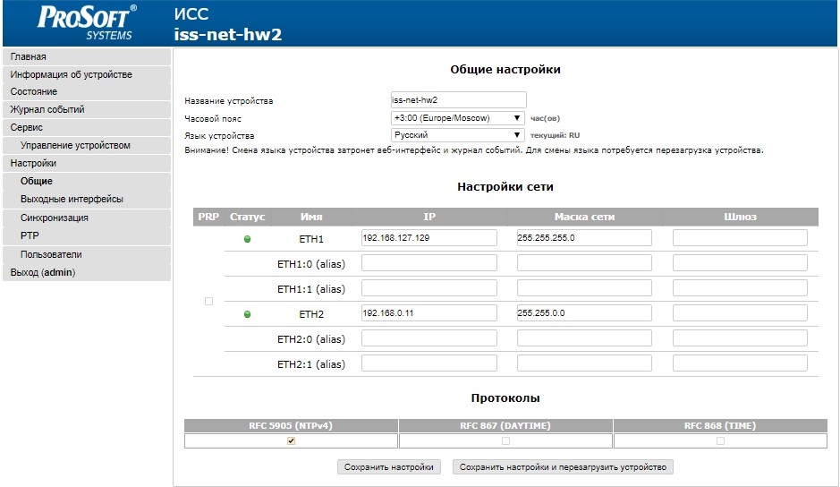 Понимая, что наладчика ЦПС без ноутбука не бывает, мы работали с устройством через Web-интерфейс.