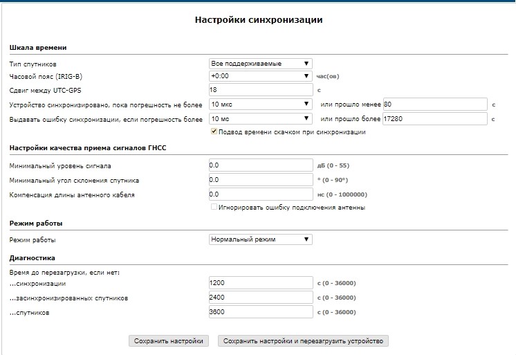 В разделе «Настройки синхронизации» (рис. 19) настраивается поведение ИСС-2 при приеме данных от спутников.