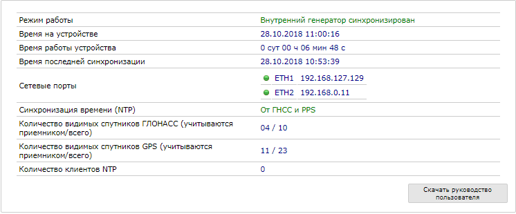 Как и ИСС-1, ИСС-2 после прерывания питания запускается последовательно. Сначала осуществляется включение и начинается выполнение внутренних функций устройства, далее включается модуль приема сигналов спутников и обеспечивает синхронизацию устройства. Учитывая, что ИСС-2 имеет поддержку PTP, подробному разбору которого посвящен целый раздел ниже, проанализируем работу устройства с точки зрения запуска, начала формирования пакетов РТР и дальнейшей синхронизации устройства от спутников.