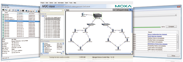 mxstudioКомпания MOXA выпустила пакет ПО «MXStudio», предназначенный для управления промышленными сетями. В пакет включены программы необходимые для продуктивной работы c оборудованием ЛВС на протяжении её жизненного цикла. MXStudio позволяет производить групповое конфигурирование устройств – задавать IP-адреса, конфигурацию протоколов резервирования, VLAN’ов. В пакет включены средства визуализации топологии ЛВС, VLAN’ов, IGMP-групп и другой информации от устройств, носящей статусный характер. Существует инструмент, позволяющий «воспроизводить» для точного определения источников неисправностей, произошедшие в течение последних 90 дней события . Также включена поддержка интеграции в SCADA-системы по OPC 2.0 Источник: moxa.com