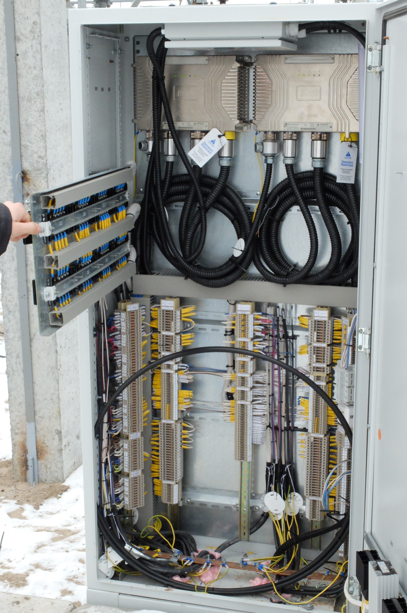 3. В поставку Hard Fiber Process Bus производитель включил также оптические кабели определённой длины (определяется на стадии проектирования) с наконечниками, причём в кабелях для ОРУ проходят две медные жилы для питания Brick. В связи с высокой стоимостью этих кабелей на подстанции применены обычные оптические кабели и отдельно медные кабели для питания Brick. Это вызвало некоторые трудности при монтаже.