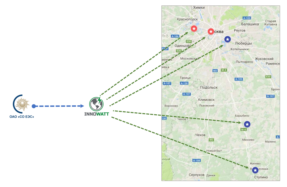 В рамках натурного эксперимента осуществлялось агрегированное управление потреблением электроэнергии географически распределенных базовых станций мобильной связи компании «T2 мобайл» (торговая марка «Tele2») и компании «МТС», расположенных на территории Москвы и Московской области. В результате эксперимента была подтверждена принципиальная возможность объединения регулировочных возможностей группы потребителей небольшой единичной мощности (в данном случае — менее 2 кВт) для участия в управлении спросом в качестве единого объекта.