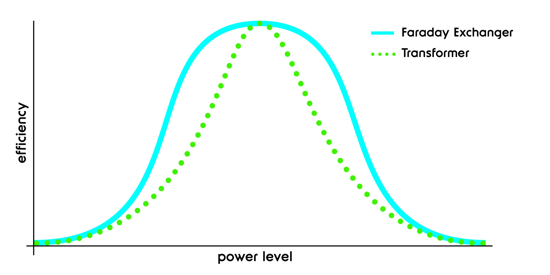 ЦПС заинтересовалась технологией, поэтому связалась с Faraday Grid, чтобы уточнить несколько моментов. В частности, нас заинтересовала следующая фраза из их установочного документа: «The Faraday Exchanger operates slightly below the peak operating point of a typical transformer; however, its band of operation is wider and hence performs more efficiently for longer periods» — ее приблизительно можно перевести как «Пиковая рабочая точка Faraday Exchanger находится немного ниже пикой рабочей точки традиционного трансформатора, однако диапазон рабочих характеристик Faraday Exchanger шире, следовательно, устройство эффективнее при долгосрочном использовании».