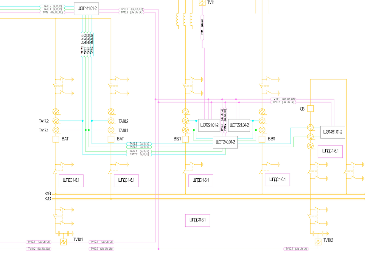 Для наглядности покажем количество SV-потоков, подводимых к устройству РЗ ЛЭП и РЗ шин для типовых схем РУ. Приведенная схема (схема в pdf; скачать полную схему в dvg-формате можно тут) ЦПС с распределением SV-потоков демонстрирует правильность предлагаемого решения. Для примера рассмотрены защиты ЛЭП и шин, поскольку они являются приемниками 75-90% трафика SV РЗА шины процесса и ориентироваться нужно на них. По результатам изыскания можно предположить, что объединять U и I в одном потоке не правильно, поскольку принципы резервирования I и U отличаются друг от друга, а динамически комбинировать составляющие пакета не представляется возможным.
