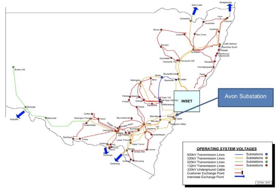 К подстанции 330 кВ «Эйвон», расположенной в 100 км к югу от Сиднея, подключаются 3 линии электропередачи 330 кВ. В рамках модернизации вторичных подсистем подстанции была запланирована замена контрольного кабеля и вторичного оборудования, включая устройства РЗА, устройства измерения и мониторинга и устройства диагностики первичного оборудования. Проект не предусматривал замену аккумуляторных батарей, зарядно-подзарядных устройств, оборудования системы собственных нужд и резервного генератора. Поскольку при первоначальном строительстве не были предусмотрены кабельные лотки и кабели просто укладывались под землю, кабельная инфраструктура как таковая отсутствовала. Реализация новой кабельной инфраструктуры должна была произойти при модернизации подстанции.
