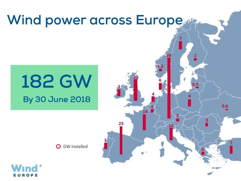 Ветроэнергетика Европы выросла в первом полугодии 2018 года на 4,5 ГВт