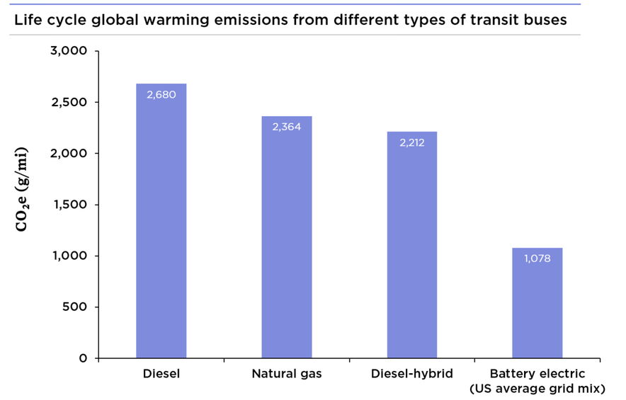 Вдогонку к предыдущей новости: американский Союз обеспокоенных ученых (Union of Concerned Scientists) подсчитал углеродный след электробусов во всех штатах США и пришел к выводу, что их выбросы ниже, чем у традиционных дизельных автобусов, по всей стране, даже в самых «грязных», с точки зрения структуры генерации, штатах — Колорадо, Миссури, Канзасе, Мичигане. Исследователи приводят такой пример для штата Северная Каролина: выбросы парниковых газов 3 электробусов (в течение жизненного цикла) будут меньше, чем у одного дизельного автобуса. В большинстве регионов США топливная эффективность дизельных автобусов должна быть увеличена как минимум в два раза, чтобы они смогли конкурировать с электробусами по объемам выбросов в течение жизненного цикла. Электробусы предпочтительнее не только в сравнении с дизелем, но и в сравнении и с гибридными автобусами, и с работающими на газе (см. диаграмму слева). Ппримечательно, что выбросы автобусов, работающих на природном газе, лишь на 12% ниже, чем у дизельных. Отметим, что углеродный след электротранспорта зависит преимущественно от структуры производства электричества в регионе производства/эксплуатации машины. Таким образом, по мере изменения структуры выработки электроэнергии и увеличения в ней доли ВИЭ, углеродный след электробусов будет снижаться еще больше. [blog.ucsusa.org, renen.ru]