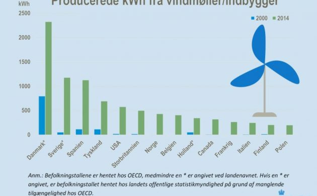 Дания заняла первое место по среднедушевой выработке электричества ветровыми электростанциями среди стран Организации экономического сотрудничества и развития (ОЭСР). В топ также вошли Швеция, Испания, Германия, США, Великобритания, Норвегия, Бельгия, Нидерланды и Канада. Согласно информации ОЭСР и Danmarks Statistik, датские ветрогенераторы ежегодно производят более 2 300 кВт·ч на одного гражданина страны — это практически в два раза больше, чем в Швеции, занимающей второе место в списке. Любопытно, что Дания остается страной, производящей больше всех ветровой энергии на душу населения в ОЭСР, последние 15 лет, причём уровень генерации за это время вырос на 192%. ВИЭ обеспечили Дании в 2016 году 26,5% общего объема производства электричества — в 2000 году этот показатель был всего 6,9%. За прошедший год ветровая энергетика составила более четверти в структуре всей возобновляемой энергетике. [cphpost.dk]