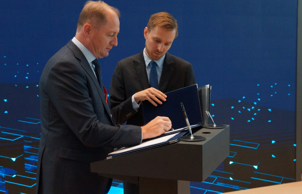 Министр энергетики РФ Александр Новак и глава группы компаний «Россети» Павел Ливинский в ходе рабочего визита в Калининградскую область ввели в эксплуатацию первый в России полностью цифровой ветропарк.