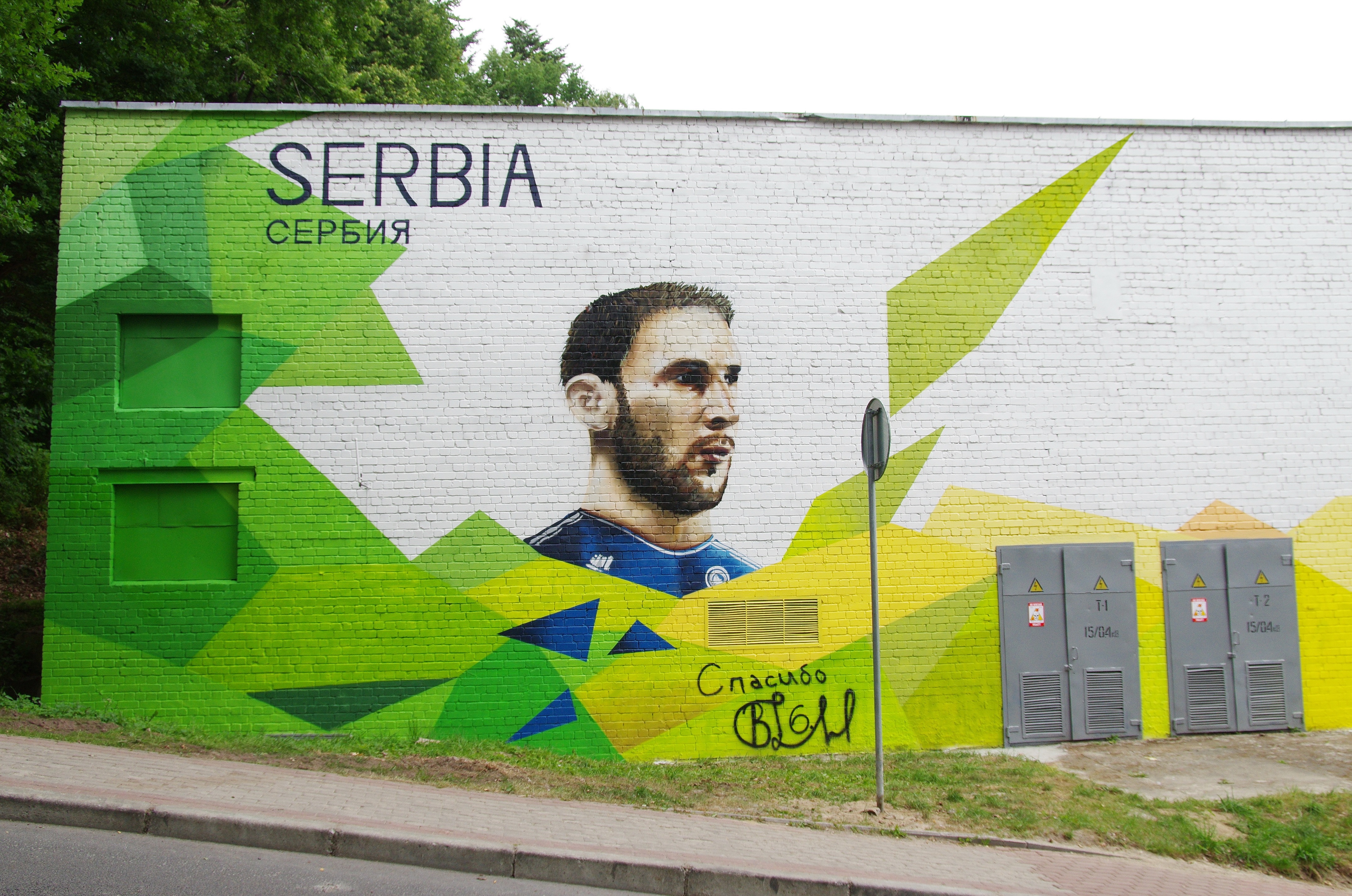 На фасаде трансформаторной подстанции в Светлогорске капитан сборной Сербии, защитник петербургской команды «Зенит» Бранислав Иванович даже оставил автограф: футболиста настолько впечатлило граффити с его портретом, что он с помощью баллончика написал слово «спасибо» и вывел свою подпись. Благодарность Бранислав Иванович адресовал не только энергетикам и граффитистам, но и всей России за радушный прием на мундиале.
