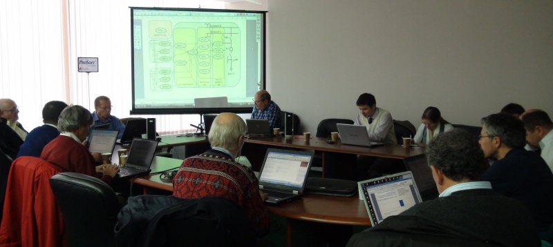 Первый день заседания открыл председатель рабочей группы Кристоф Бруннер. В ходе вводной секции участники заседания выслушали доклады участников профильных комитетов МЭК по развитию профильных стандартов МЭК, IEEE и других. Стандарт МЭК 61850 начинается активно цитироваться и внедряться в профильных стандартах на силовое электротехническое оборудование, на системы малой генерации. Одним из примеров такого стандарта можежт служить стандарт МЭК 61400, описывающий требования к вэтроэнергетическим установкам. В настоящее время этим стандартом описан целый ряд логических узлов согласно МЭК 61850. Одновремнно с этим активно развиваются стандарты передачи данных, которые могут быть интегрированы в МЭК 61850 в качестве протоколов. Интерес участников высзвало замечание о развитии стандарта передачи данных в распределительных сетях и сетях среднего напряжения, использующих технологию передачи данных по силовой сети, который планируется гармоизировать с МЭК 61850.