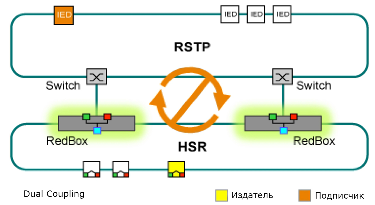 Внедрение сетей на базе протоколов PRP/HSR призвано обеспечить надежную передачу данных на промышленных объектах. Новые технологии улучшают показатели точности и надежности, а также обеспечивает увеличение производительности коммуникационных сетей подстанции, что способствует их активному внедрению. Тем не менее, чтобы избежать лишних затрат, желательно оставлять в эксплуатации существующие устройства. До настоящего времени большинство решений по переводу существующих устройств на работу в сетях PRP/HSR не оправдывали ожиданий, в том числе, с точки зрения экономической эффективности. Поскольку существующие устройства поддерживают протокол RSTP (Rapid Spanning Tree Protocol — быстрый протокол разворачивающегося дерева), контрольные пакеты которого не могут быть правильно обработаны в сетях на базе протоколов PRP/HSR, то традиционным решением является объединение сети на базе RSTP и сети на базе PRP/HSR с помощью коммутаторов, которые обеспечивают преобразование между протоколами RSTP и PRP/HSR. Основным недостатком выступает тот факт, что большинство решений содержат собственные «проприетарные» протоколы, которые в большинстве случаев становятся причиной возникновения последующих проблем с совместимостью, поскольку в одной сети объединяются множество различных протоколов и устройств от разных производителей.